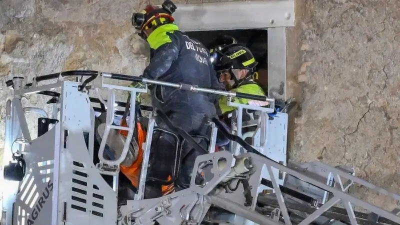El operario permaneció atrapado hasta pasadas las 22:30 hora local (21:30 GMT), momento en que fue finalmente liberado por los equipos de emergencia y fue trasladado en ambulancia a un hospital de la capital italiana.