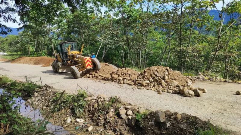 La Administradora Boliviana de Carreteras (ABC) realiza trabajos de emergencia y mantenimiento en el tramo Locotal – Villa Tunari, en el trópico del departamento de Cochabamba, con el objetivo de garantizar la transitabilidad y seguridad de los conductores que circulan por esta importante ruta.