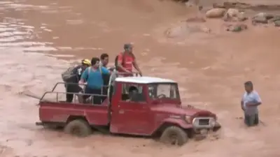 Los transportistas deben realizar maniobras riesgosas para cruzar el río Piraí, donde el nivel del agua supera las llantas de las camionetas que trasladan frutas y otros productos. En algunos casos, los comunarios se ven obligados a descender de sus vehículos para empujar o cruzar a pie.