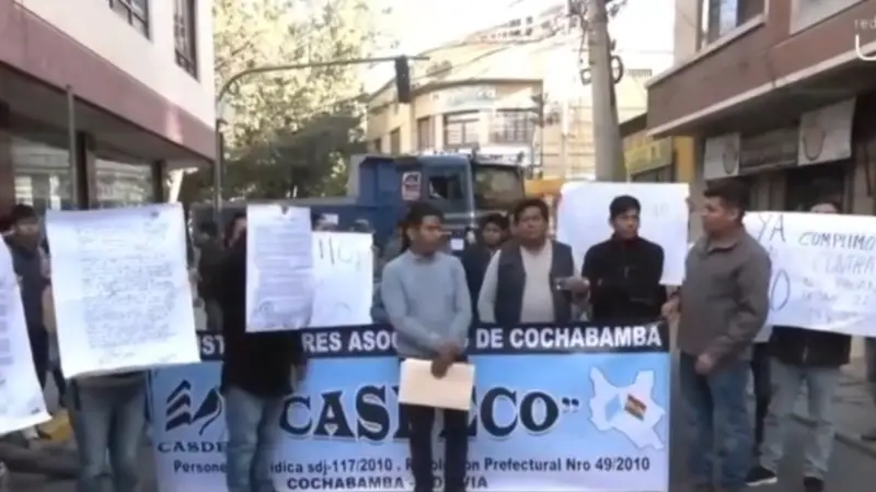 Los representantes y trabajadores de empresas constructoras instalaron nuevamente un bloqueo en inmediaciones de la plaza Colón, impidiendo el ingreso a la Alcaldía de Cochabamba, en protesta por la falta de pago por obras ejecutadas desde la gestión 2022.