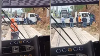 Uno de los pasajeros del tren compartió el incidente ocurrido en cercanías de la estación central, y muestra como el vehículo cerró por completo la circulación de los vagones, pues quedó atascado sobre toda la vía de circulación.