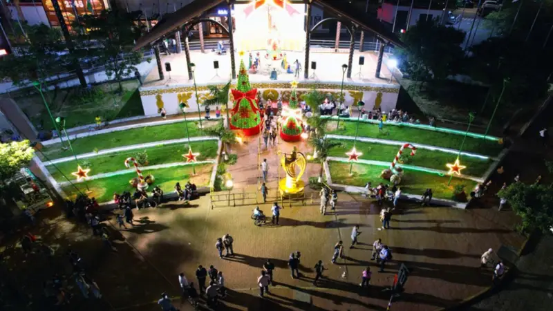 El tradicional encendido de luces navideñas reunió a decenas de familias y marcó el inicio de una agenda de actividades en el centro cruceño durante los fines de semana.