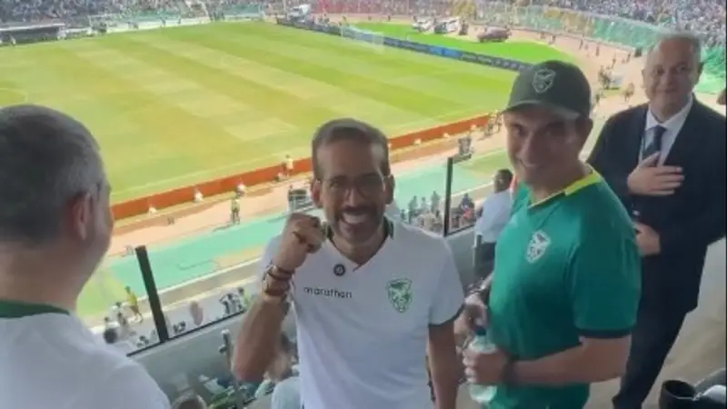 Camacho “¡Vamos Bolivia!”, Paz “Vamos la patria carajo” fueron los gritos de aliento previo inicio del partido en el palco de preferencia donde espectarán este cotejo deportivo.
