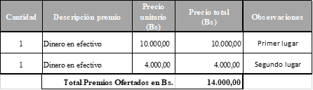 f) PREMIO OFERTADO: el premio consiste en: