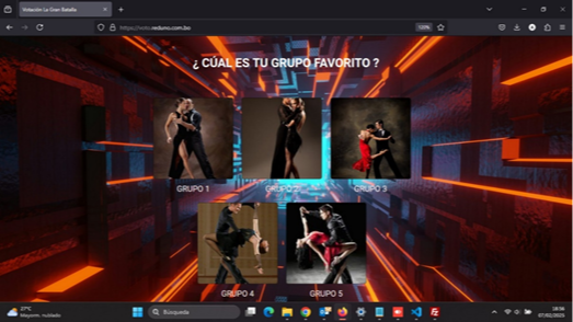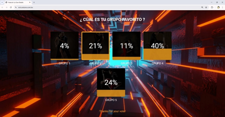 Mientras este habilitado la plataforma, se visualizará el porcentaje de votación para las presentaciones de lunes a jueves