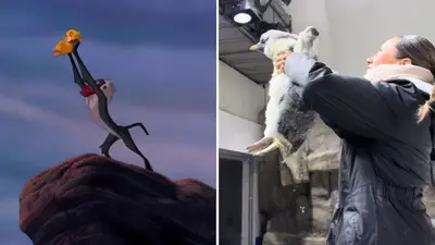 El video, difundido en TikTok, recrea una de las escenas más emblemáticas de El Rey León: el momento en que Rafiki alza a Simba ante el reino.